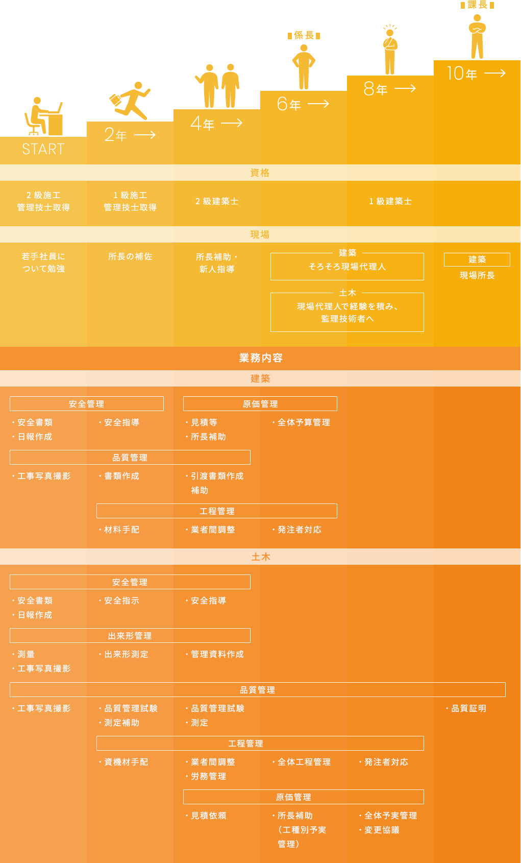 土木現場代理人で経験を積み、監理技術者へ
